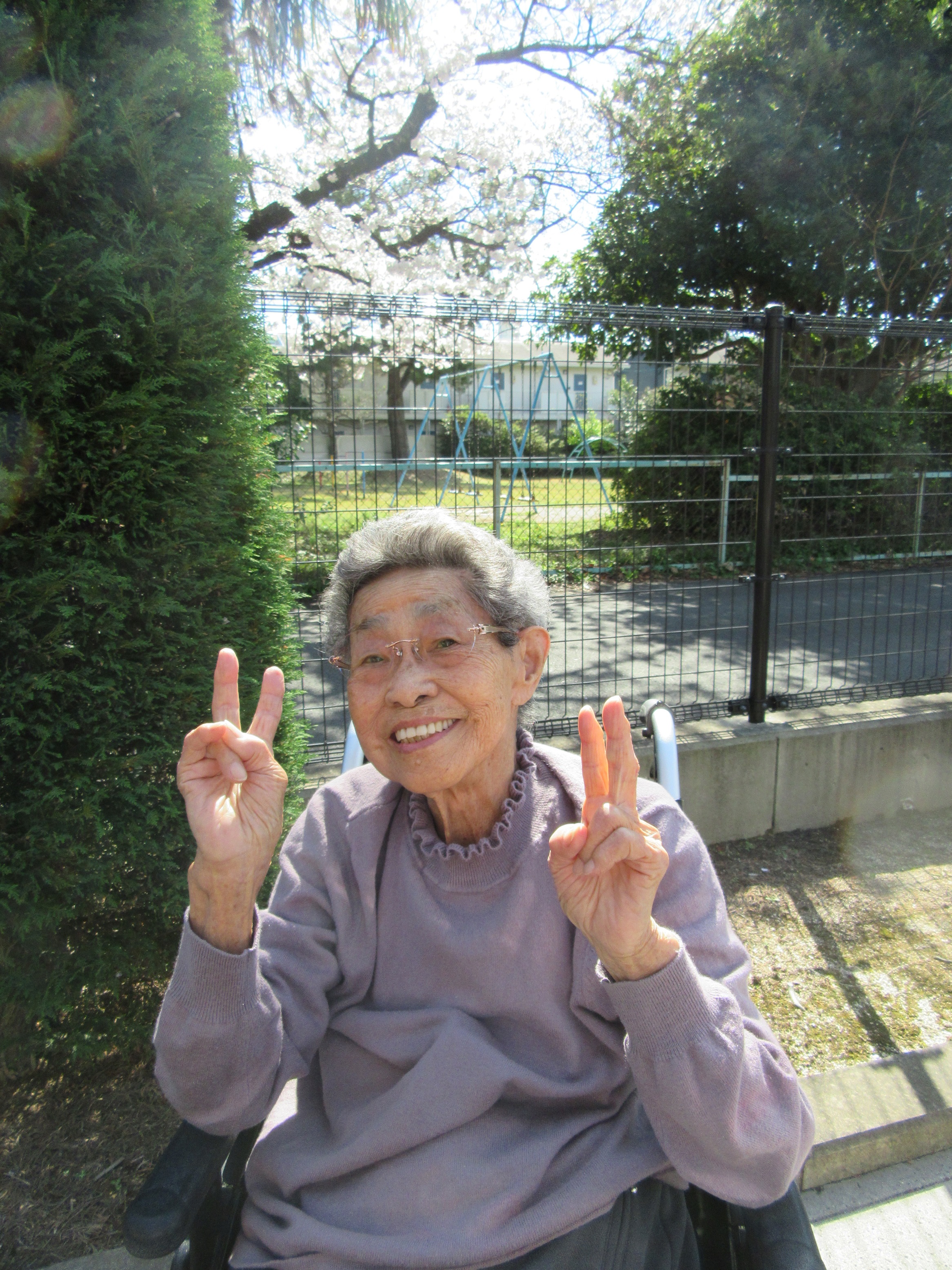 お花見 4丁目1番地 こんにちは、藤乃花の栗本です。 段々と暖かく風も心地よい季節になってきました。 施設の隣にある公園の桜の木も咲き始めてきました。 天気も良く気温も丁度良かったので、入居者様をお誘いし短い時間ではありましたが、 お花見をしてきました。 コロナウイルスが流行っていたため、入居者様も外に出るのが久しぶりだったこともあり、 「外はやっぱり気持ちがいいね」「空気が違うね」「桜も丁度良く咲いてきれいだね」と 良い笑顔を見る事が出来ました。