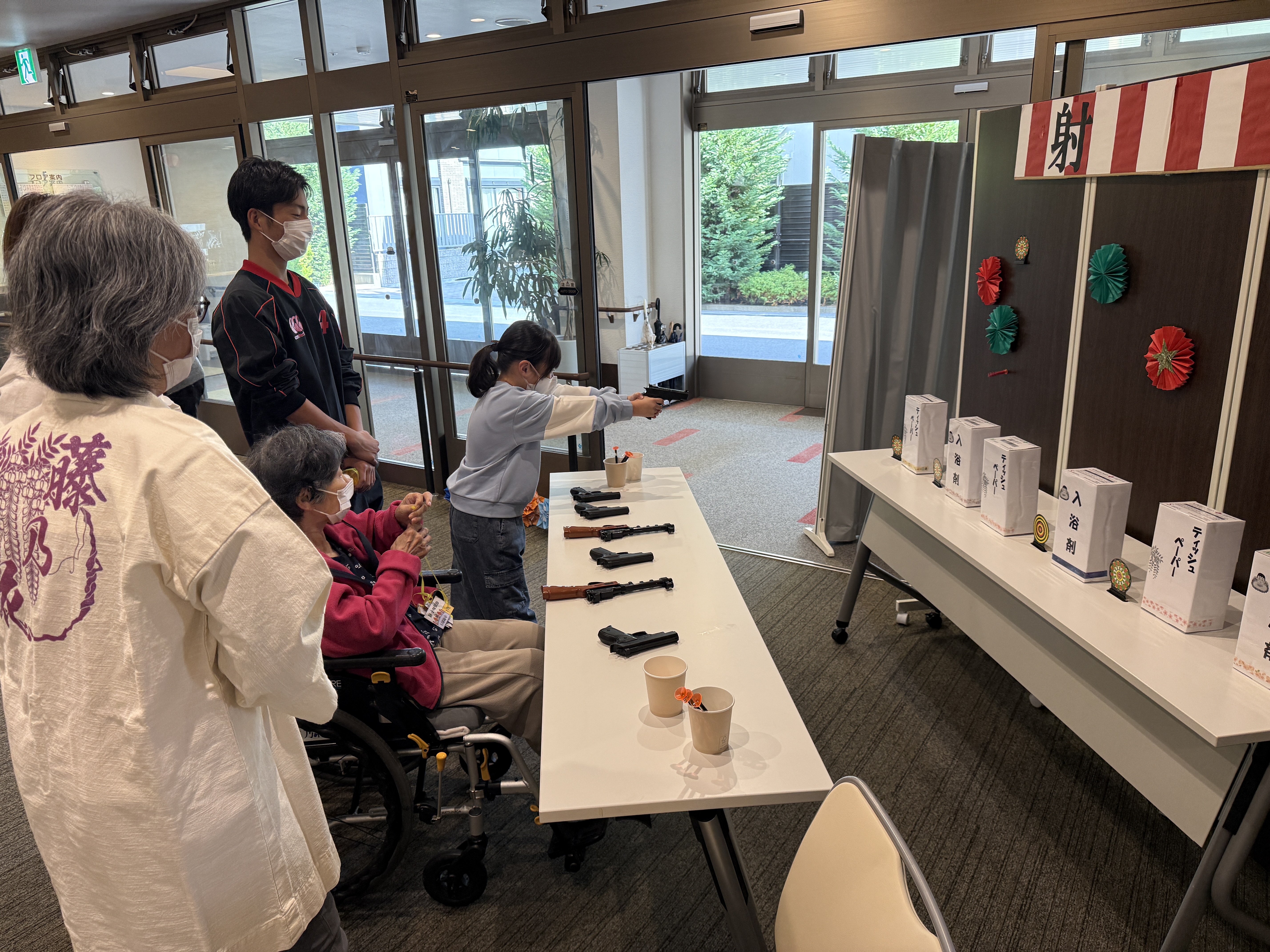 職員手作りのブースでは、「射的」「ボール転がし」「こもの釣り」「チンチロリン」などのゲームで歓声が上がっていました!