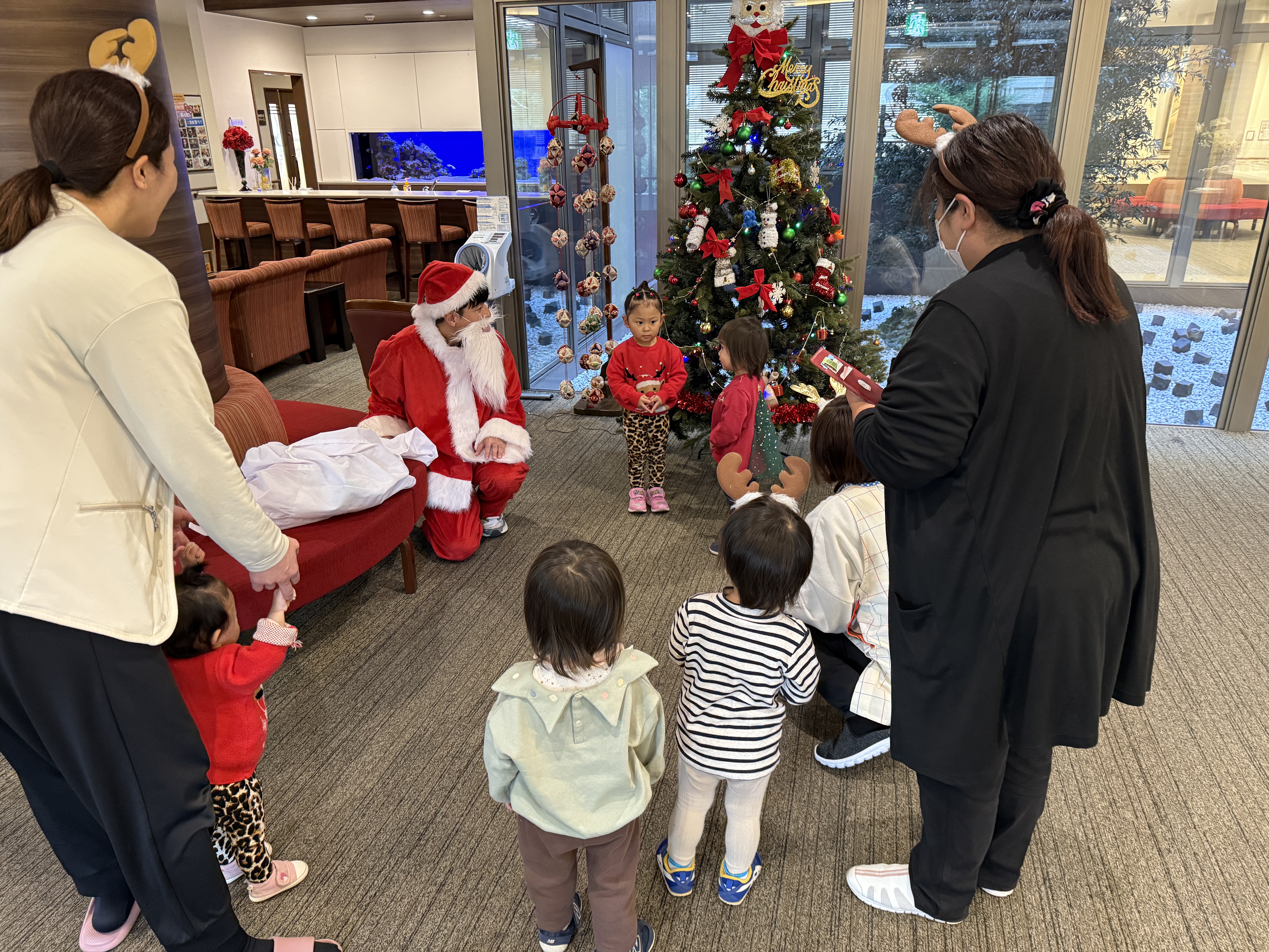 託児室の子供たちのところにもサンタクロースが来てくれました(^_-)-☆
