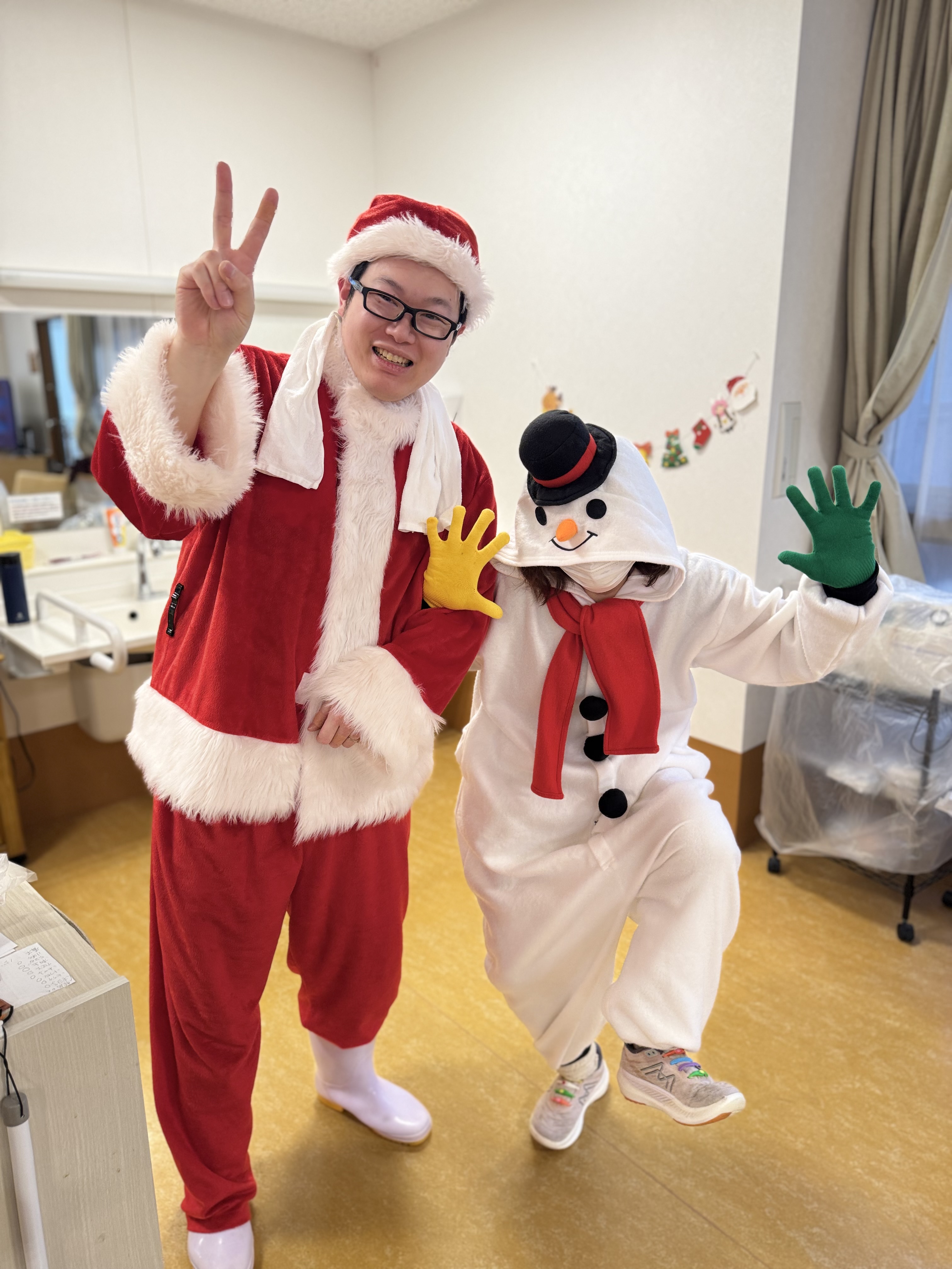 クリスマス会を盛り上げるサンタクロースとスノーマンでございます(笑)。